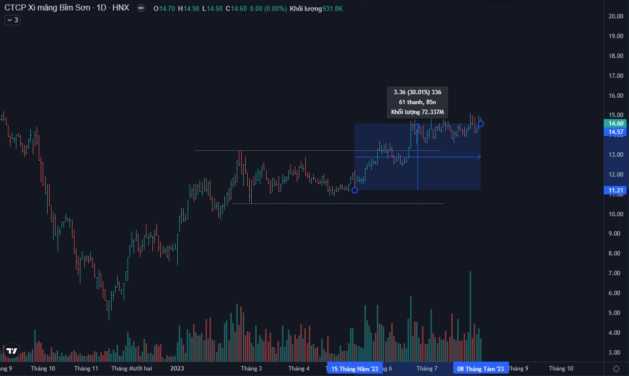 … BCC tăng 30.01% trong vòng 85 ngày, từ 15/05/2023 đến 08/08/2023.