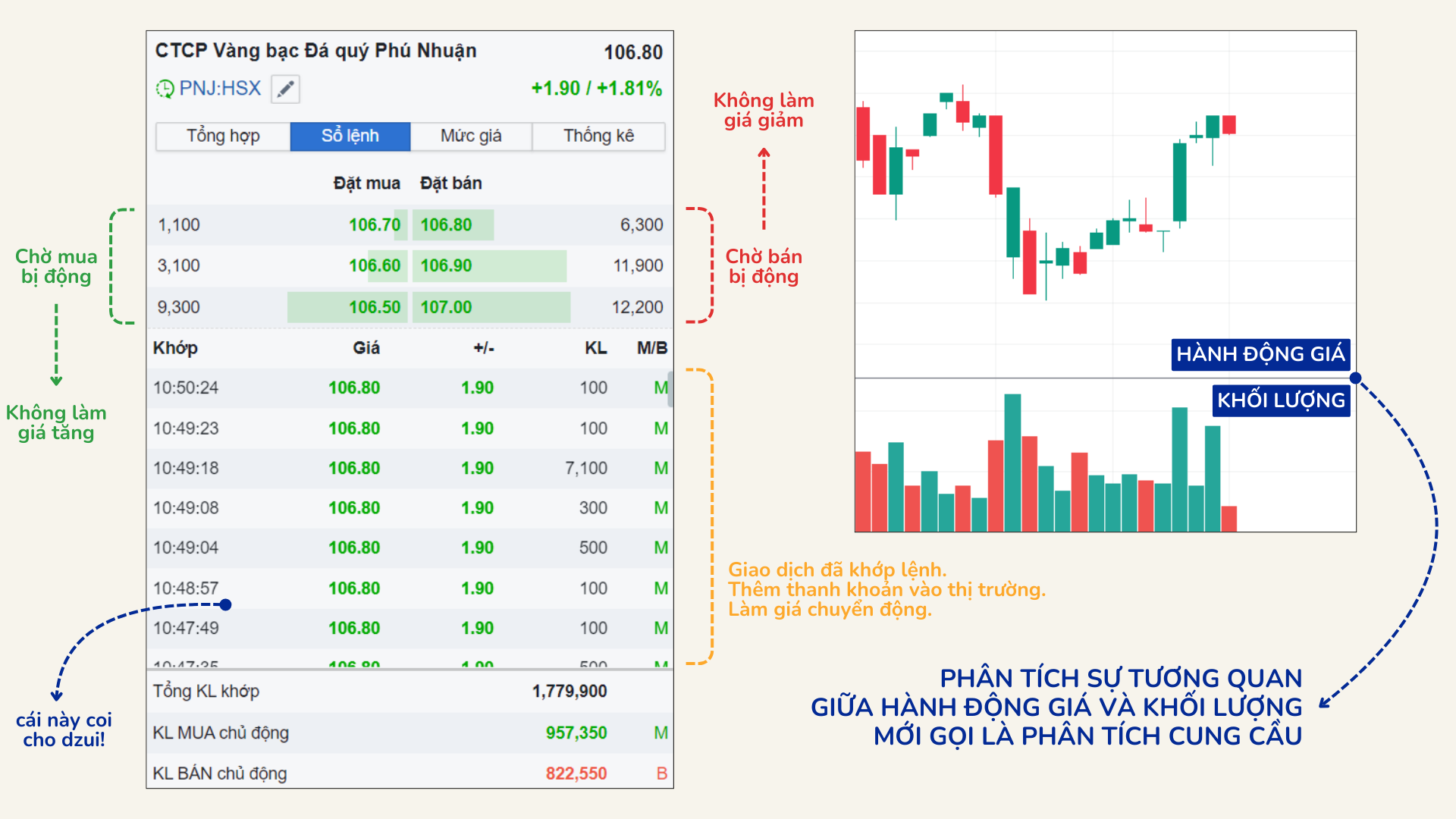 Bất kể lệnh mua hay bán đến từ đâu (cá nhân, tự doanh, nước ngoài, tổ chức…), kết quả là thanh khoản được thêm vào thị trường. Đây mới là điều thực sự quan trọng khi nói đến giao dịch, chứ không phải nước ngoài mua ròng bán ròng. Hành động giá và khối lượng là hai công cụ mà bạn nên sử dụng để hiểu kết quả của sự tương tác giữa cung và cầu.