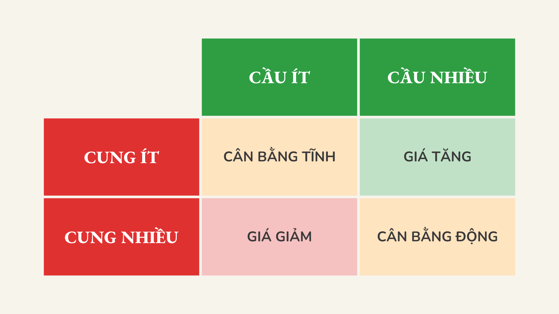 Trong trường hợp cung và cầu giằng co với nhau thì giá không thể di chuyển về một hướng mà có xu hướng đi ngang. Lúc này thị trường rơi vào trạng thái cân bằng. Cung ít cầu ít thì thị trường cân bằng tĩnh, ngược lại, cung nhiều cầu nhiều thì thị trường cân bằng động.