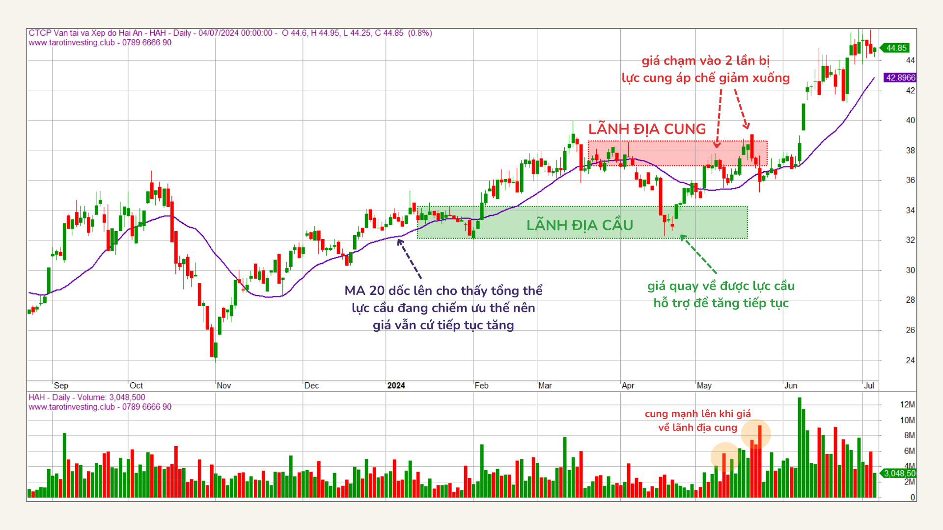 Lãnh địa cung và Lãnh địa cầu: bạn hãy hình dung thị trường là một chiến trường của lực cung và lực cầu. Trên chiến trường đó, những nơi mà lực cung và lực cầu chiếm giữ làm căn cứ được gọi là lãnh địa. Lãnh địa cung là vùng giá đi ngang rồi giảm xuống. Lãnh địa cầu là vùng giá đi ngang rồi tăng lên. Việc giá đi ngang cho thấy cung cầu cân bằng. Sau đó một trong hai lực lượng trỗi dậy đánh lui lực lượng còn lại và lấy vùng giá cân bằng làm căn cứ. Khi giá quay trở lại những vùng lãnh địa này sẽ có xu hướng bị áp chế bởi lực lượng đang chiếm giữ ở đây. Ví dụ khi giá tăng lên lãnh địa cung thì bạn có thể dự báo được sắp tới lực cung sẽ xuất hiện và cản trở lực cầu tiến lên. Hoặc khi giá giảm xuống lãnh địa cầu thì sẽ có lực cầu xuất hiện hấp thụ lực cung và ngăn chặn đà giảm.